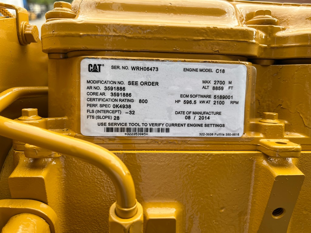 Zero Hour Rebuilt CAT C18 Industrial Engine; 800HP @ 2100RPM; SAE 1 Flywheel Housing; Dual Turbo; Front Sump Oil Pan; Narrow Mount Tier 2 Flex Emissions; In Stock