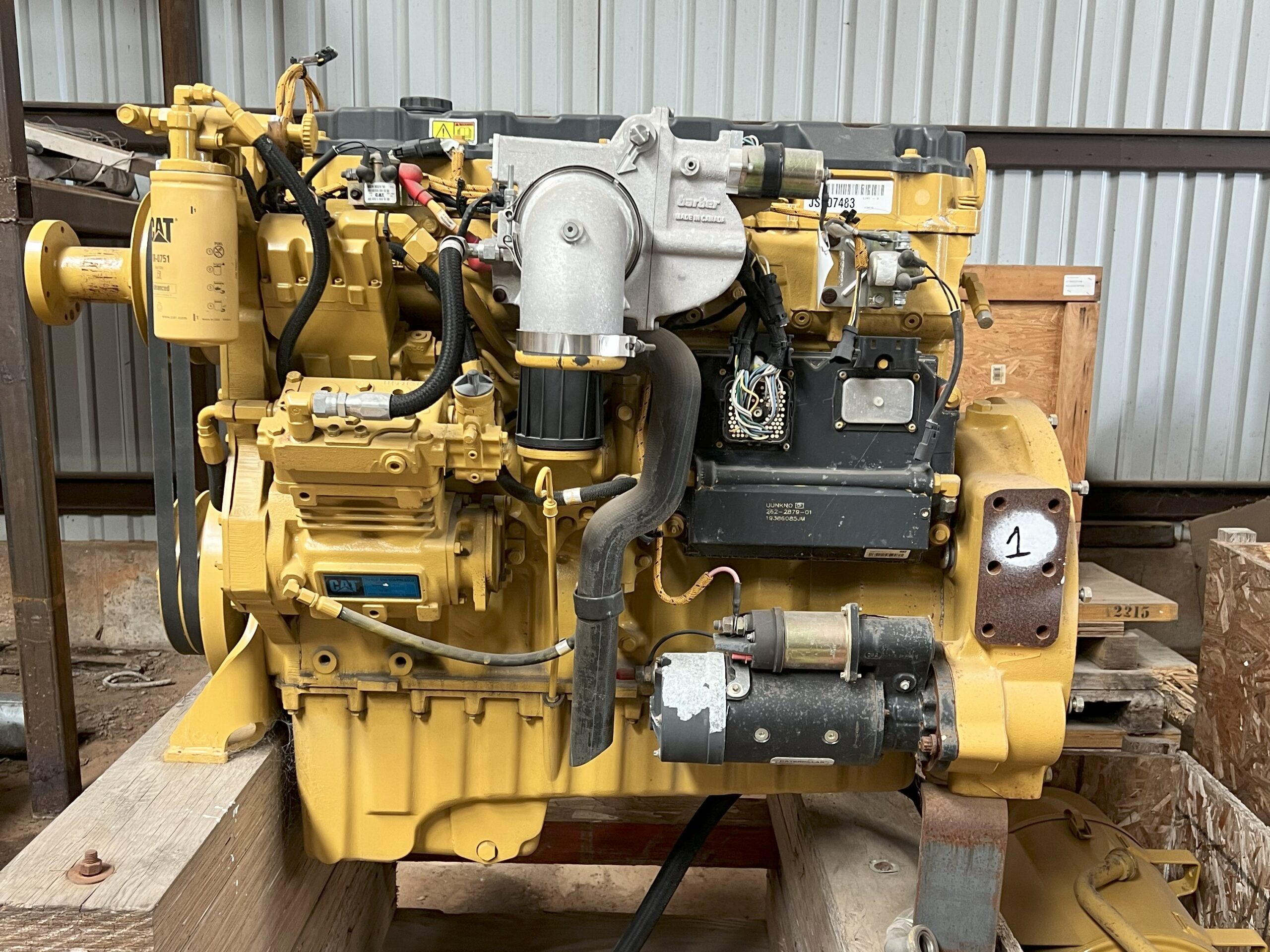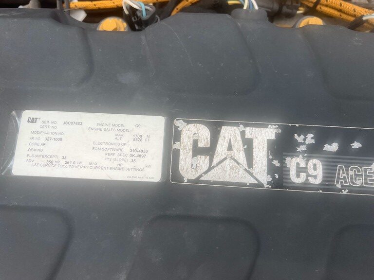 Surplus CAT C9 Industrial Engine; 2008 Model – Unused; 350HP @ 2200RPM; SAE 1 Flywheel Housing; Electric Starter; Charging Alternator; Air Compressor; Transmission Oil Cooler; Tier 3 Emissions; In Stock