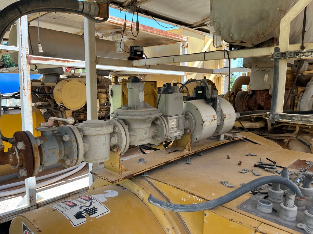 Used CAT 3512B Land Electric Generator Set; 2003 Model – 32,501 Original Hours; Tier 1 Emissions; Kato 6P6-3150 Generator End; 600V; Heavy Duty Skid; Engine Driven Radiator; Oilfield Ready; 1101kW Prime Power; High Hour Running Unit; GTI Altronic Natural Gas BiFuel Kit