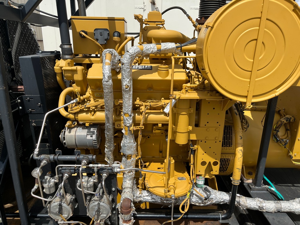 Used CAT CG137-8 Generator Set; 2014 Model – 7,726 Hours Since New; 275kW Continous Power; Open Skid Mounted; EMCP 4.3 Controller; Mounted Breaker; Engine Driven Radiator, Oil Makeup System; Electric Starter; Heavy Duty Air Cleaner; Gas Regulator with Fuel Scrubber; Heat Tracing Througout; Jacket Water Heater; Muffler with Catalyst System