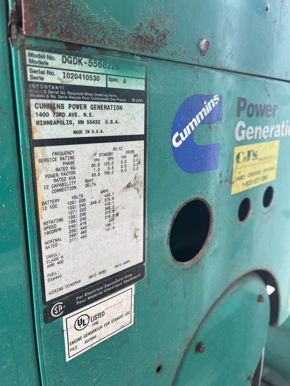 Used Cummins DGDK Generator Set (125 kW, Super Quiet)
